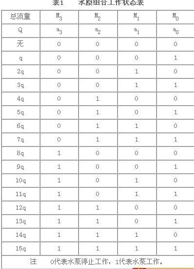 在文獻[1]中提出了一種不使用變頻器(或氣壓罐)的自動穩(wěn)壓給水方法,即二進制變流量水泵組合穩(wěn)壓給水方法,現(xiàn)介紹如下:
