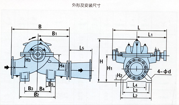 S,SH型單級(jí)中開離心泵外型及安裝尺寸