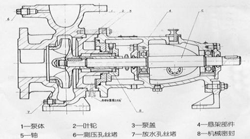 IS/ISR臥式單級(jí)單吸清水離心泵結(jié)構(gòu)圖及結(jié)構(gòu)說(shuō)明