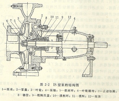 單級離心泵由于其用途的不同,有很多型號,它們的結構也各不相同。在此,只介紹較常用的IS型和S型兩種單級離心泵的結構。