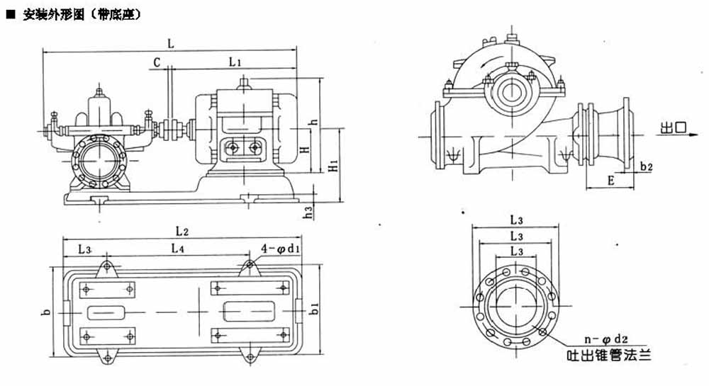 S、SH型單級雙吸大流量農(nóng)田灌溉排水泵結(jié)構(gòu)圖: