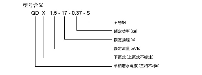8、電壓除了可以做220V以外,還可以做380V電壓型號將變?yōu)?SPAN lang=EN-US>QX不銹鋼潛水泵。