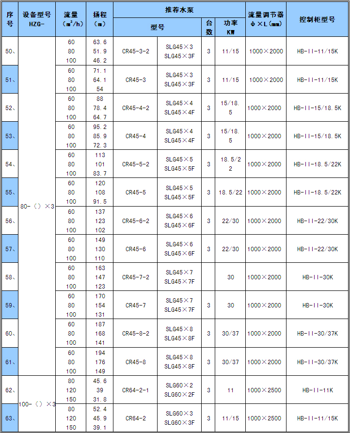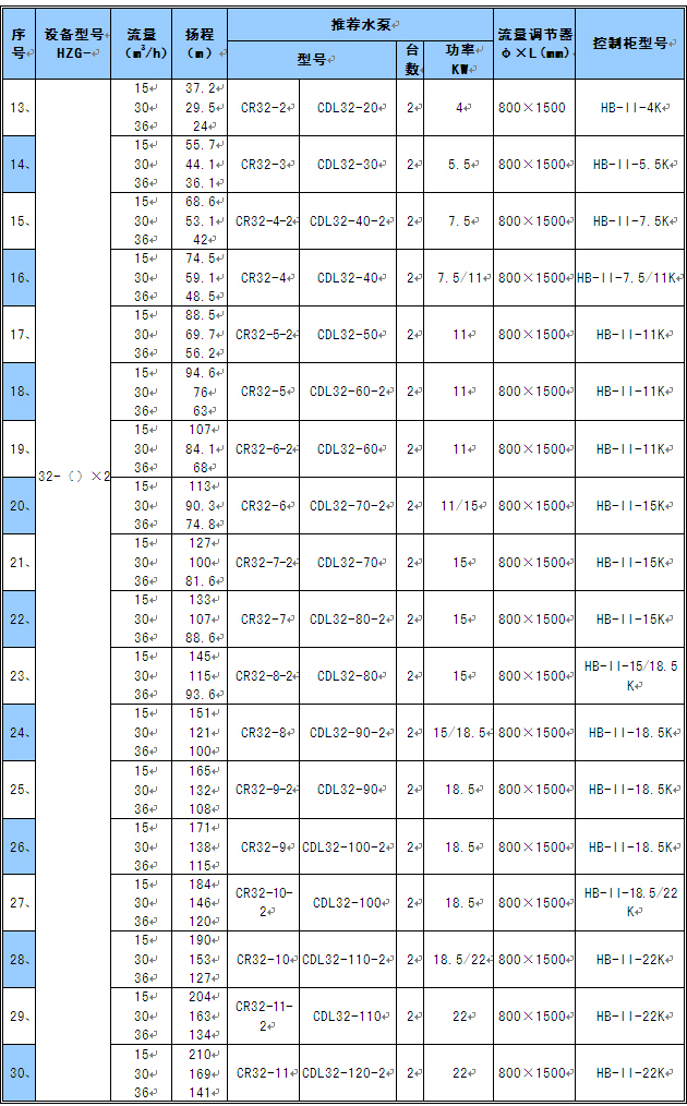 1) 表中的流量均按實(shí)際大用水量設(shè)計(jì),設(shè)備型號(hào)為常用推薦型號(hào),也可根據(jù)顧客實(shí)際情況和特殊要求另行設(shè)計(jì)。