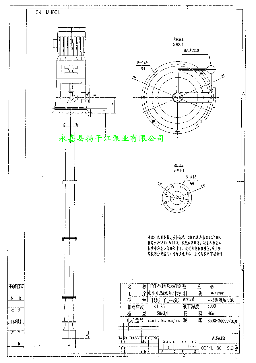 380V/60HZ揚(yáng)程80米316L材質(zhì)液下泵液下長(zhǎng)度5.9米結(jié)構(gòu)圖