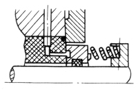 用彈簧壓緊密封端面;有時用彈簧傳遞扭矩由于端面磨損,使彈簧力在10%"-20%范圍內(nèi)變化。制造簡單,使用范圍受輔助密封圈耐溫限制 |